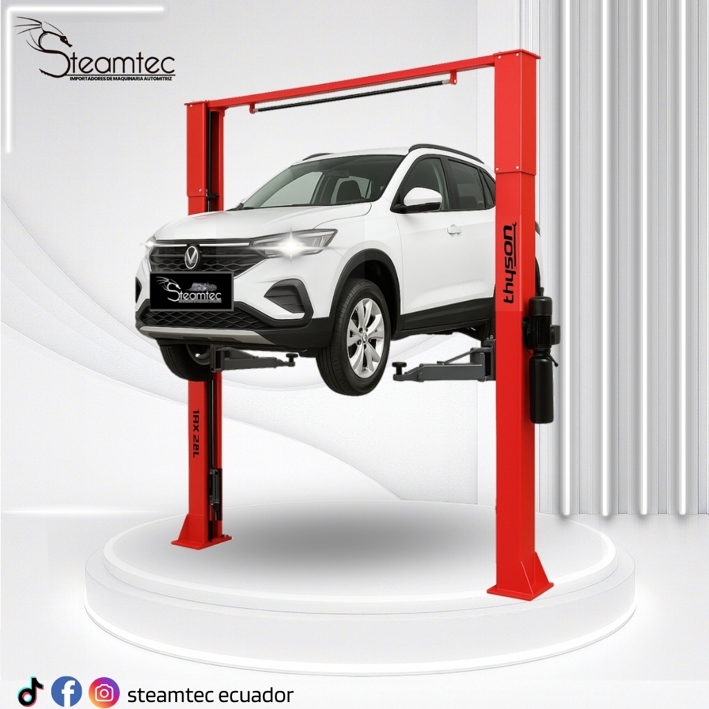 El elevador 2 postes 4 toneladas THYSON es ideal para Talleres Mecánicos, Tecnicentros y centros de mantenimiento Automotriz. También puedes conocer nuestros elevadores automotrices y más opciones de Equipamiento para Taller Automotriz en Steamtec Ecuador. Para más información técnica de la marca, consulta el sitio oficial del fabricante.